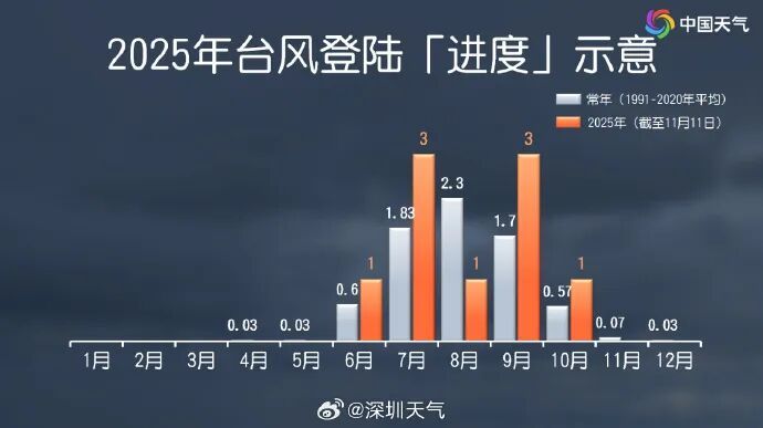 根据@中国天气 统计,从常年平均(1991-2020年)数据来看,11月和12月登陆我国的台风加起来都不到1个,这可能意味着今年台风季的大幕即将落下。