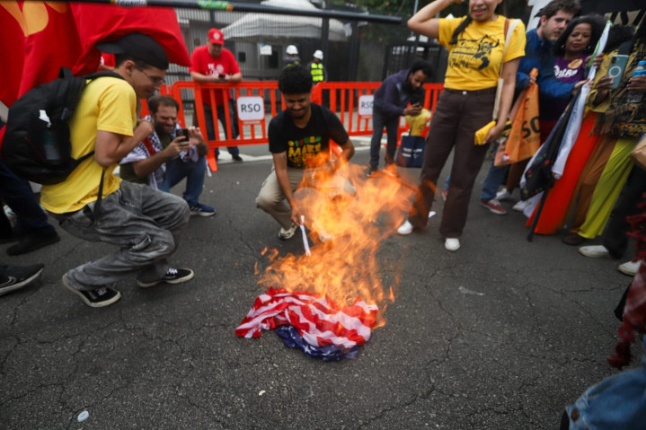 巴西抗议者在圣保罗街头焚烧美国国旗